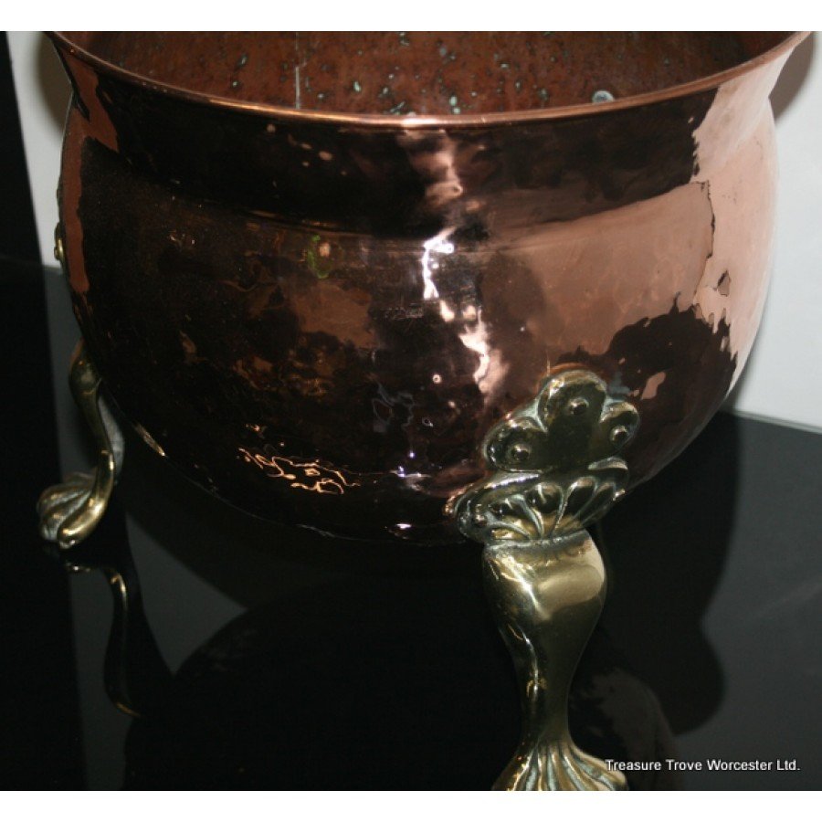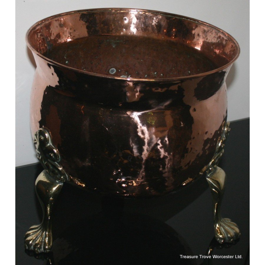 Quality Antique Polished Copper Brass Footed Log Bucket