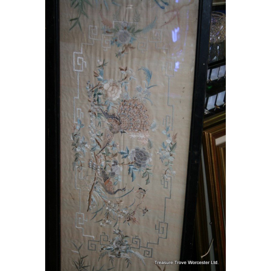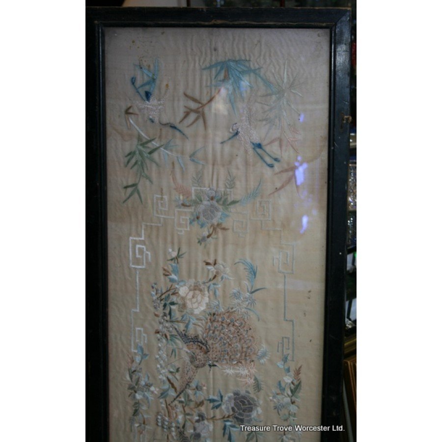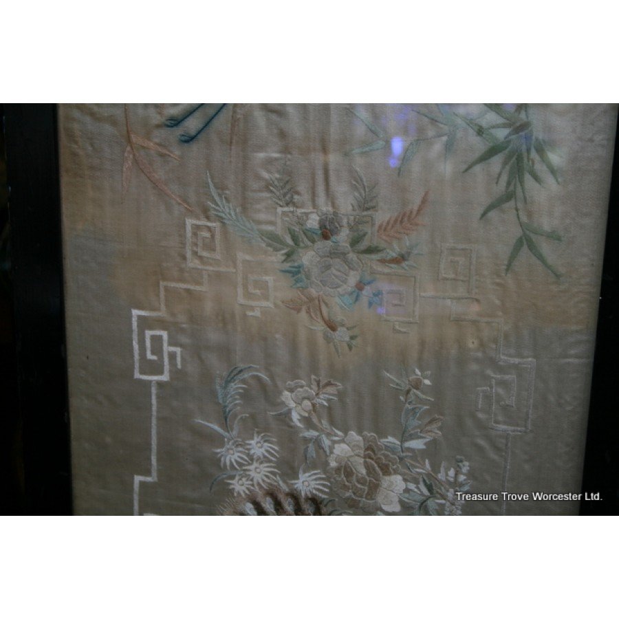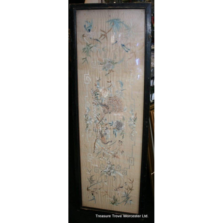 Antique Framed Silk Wall Hanging c.1900