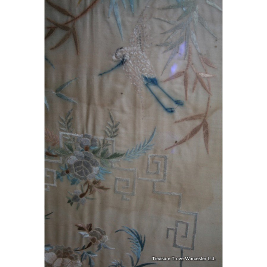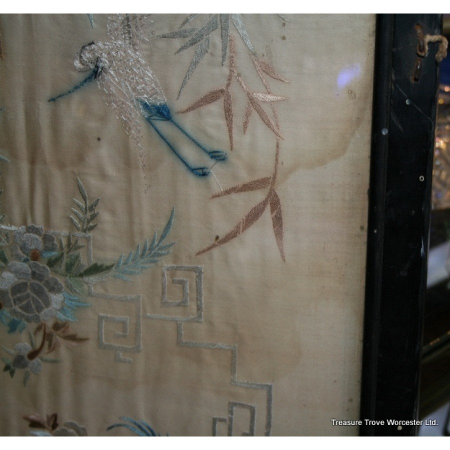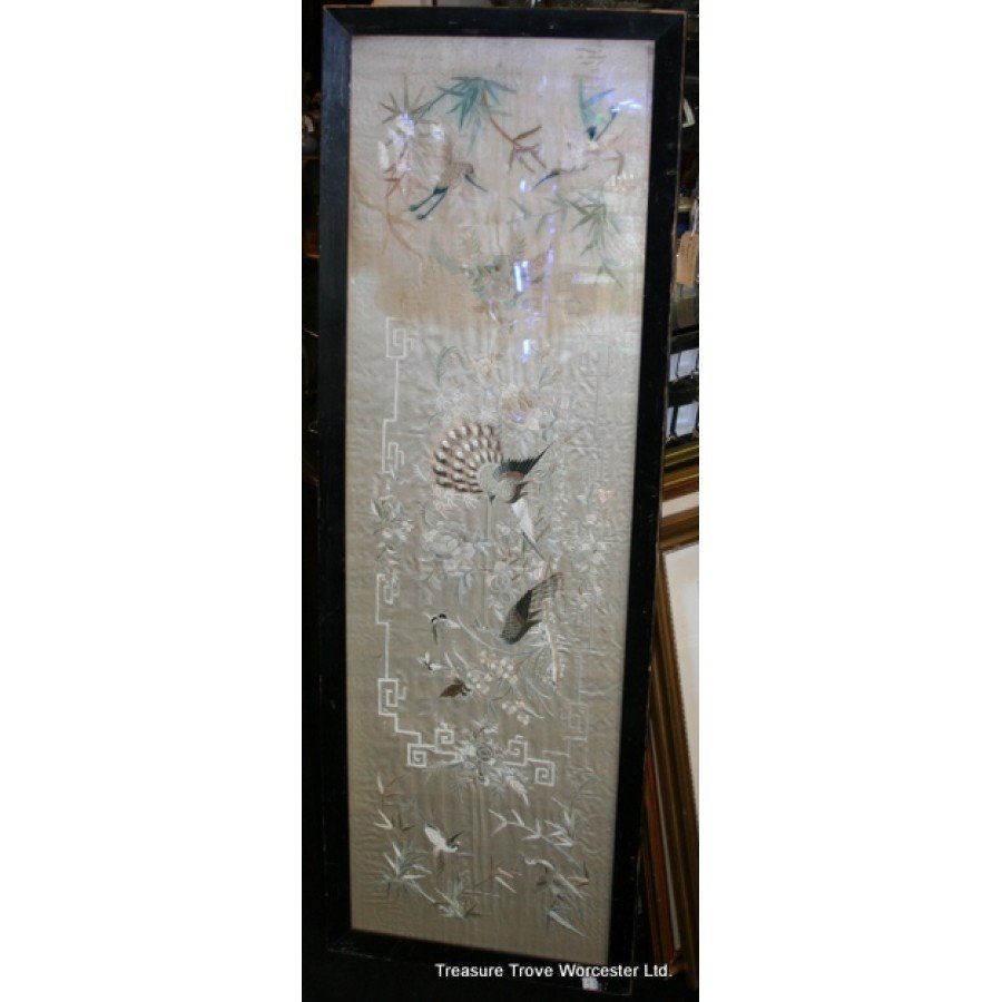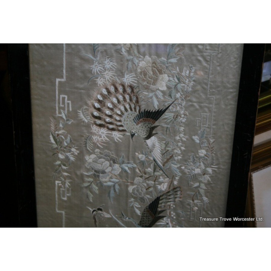 Antique Framed Silk Wall Hanging c.1900