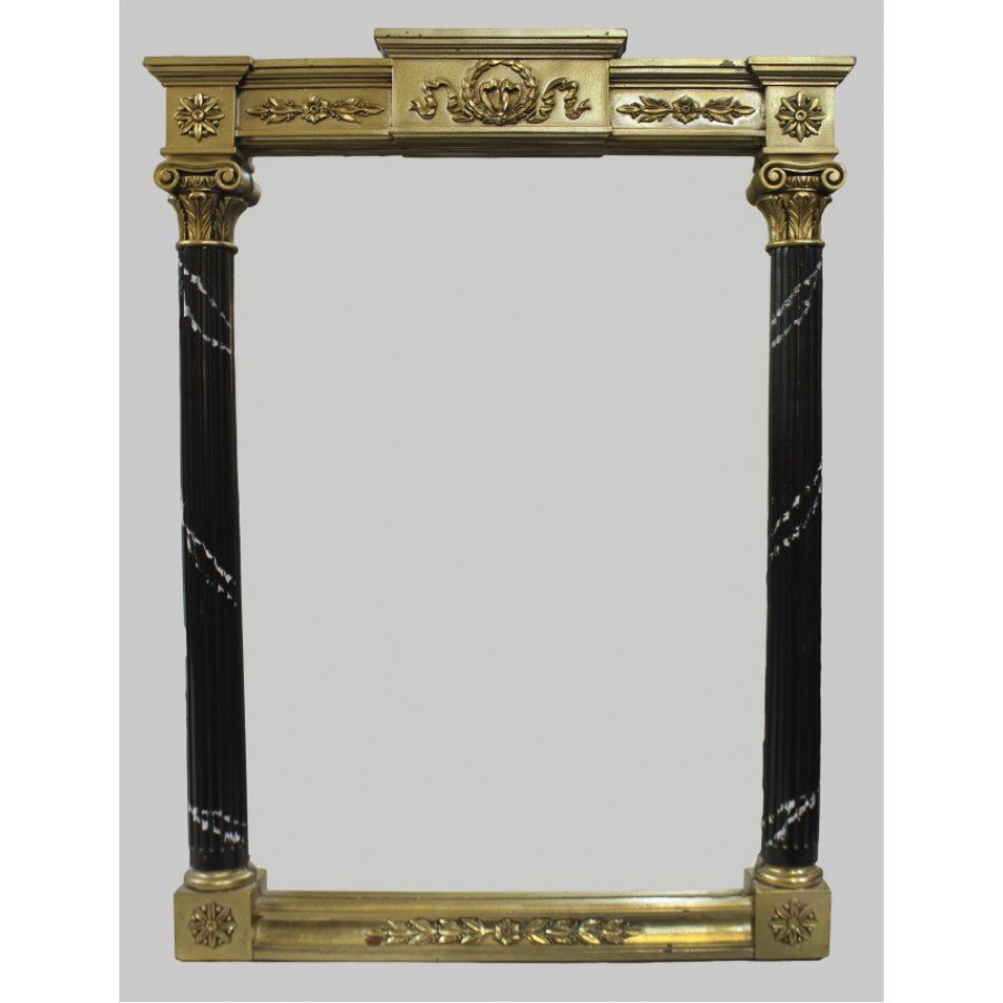 | Decoration | Gilt frame with painted simulated marble columns. Plate glass |