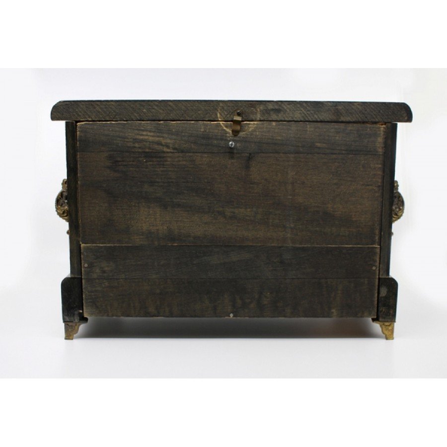 | Case | Temple style ebonized wooden case with brass inlay, brass carrying handles and decorative brass feet |