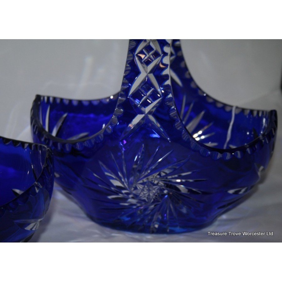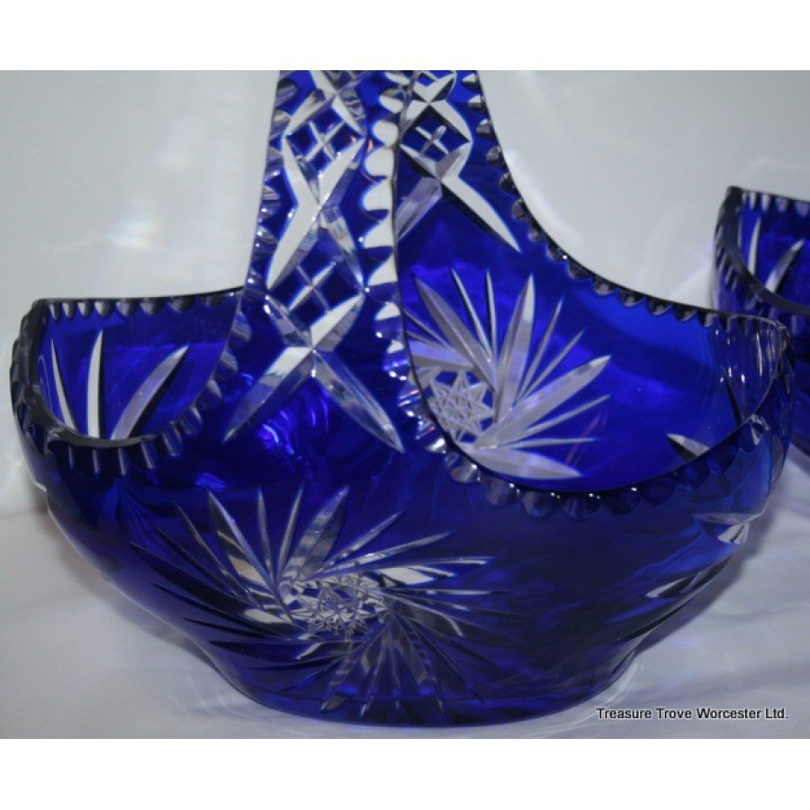 Pair of Cut Glass Blue Overlay Crystal Baskets