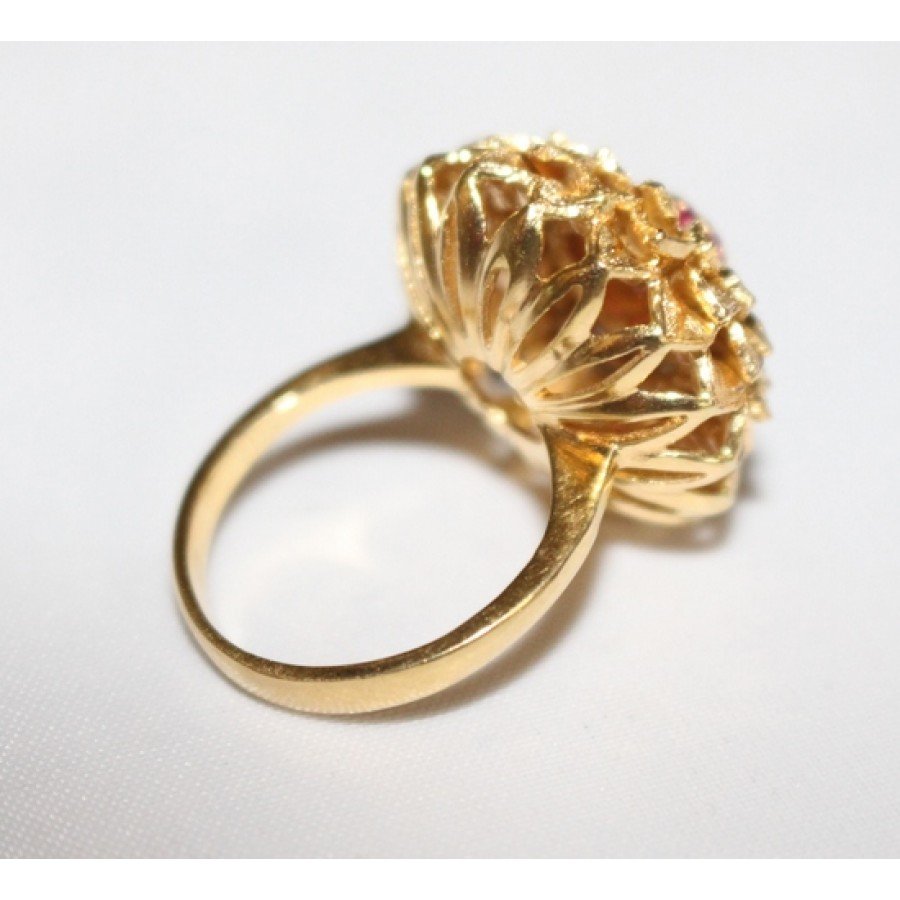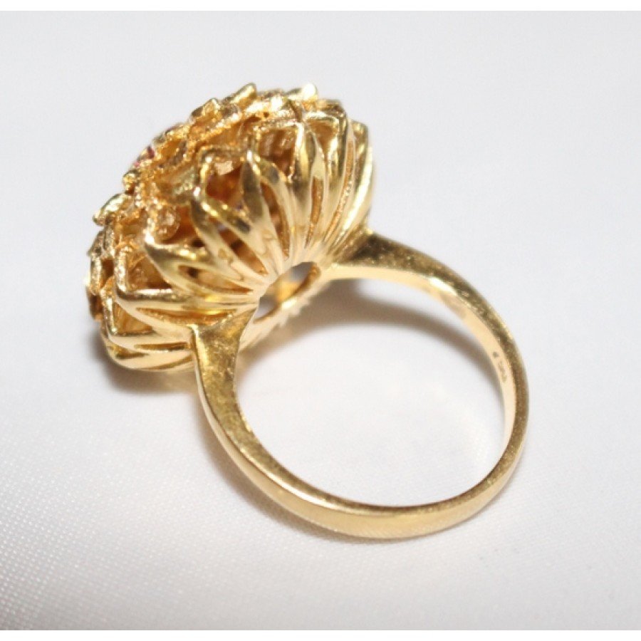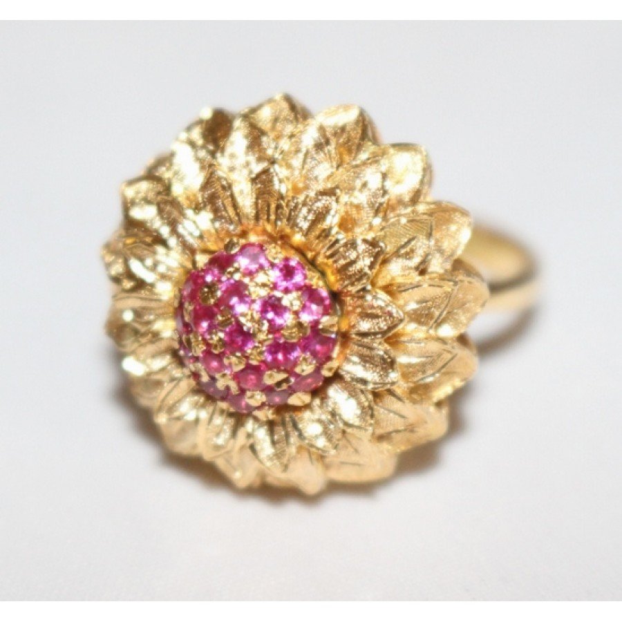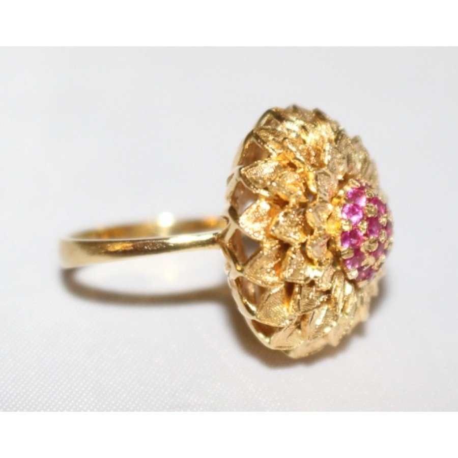Very stylish sunflower design pink ruby 18ct gold ring