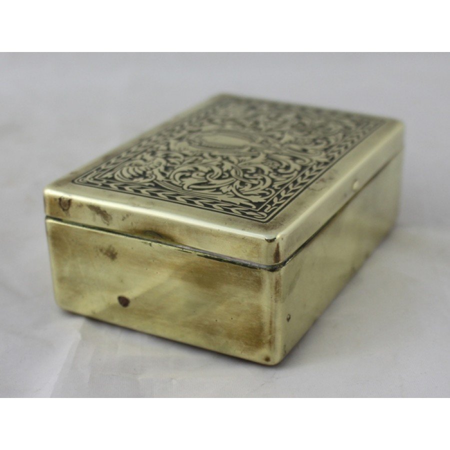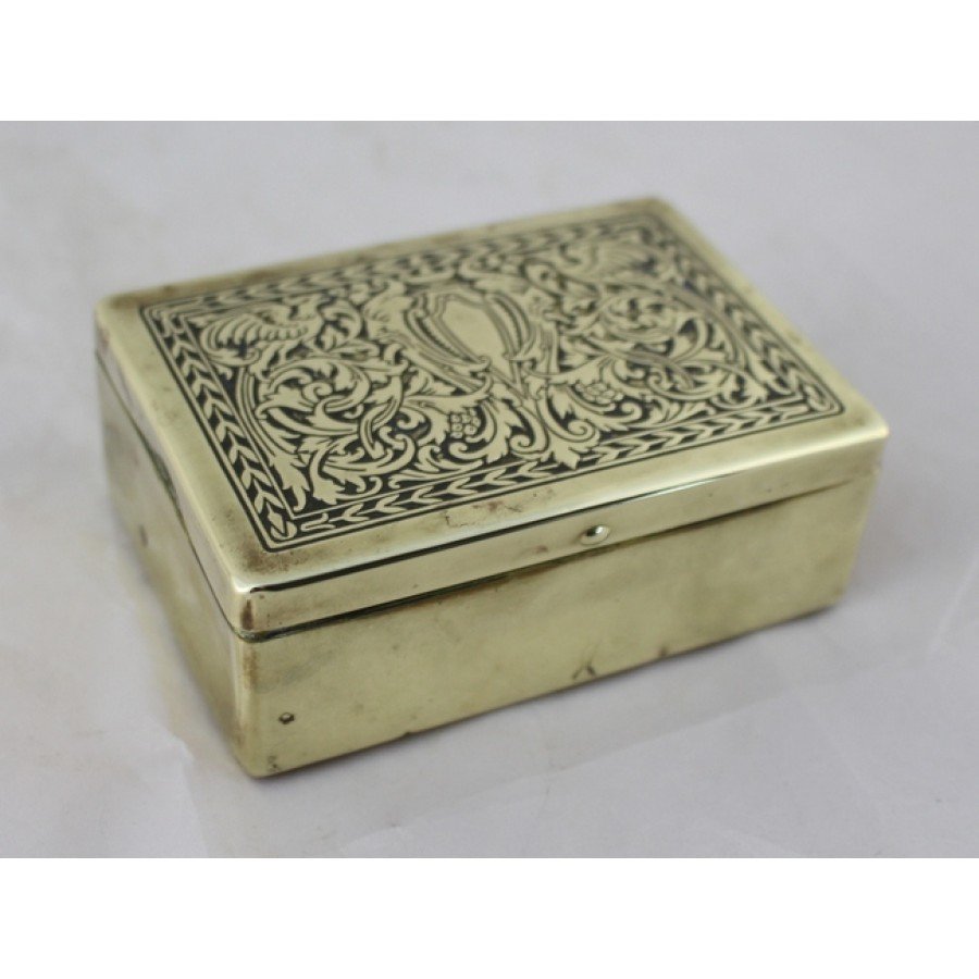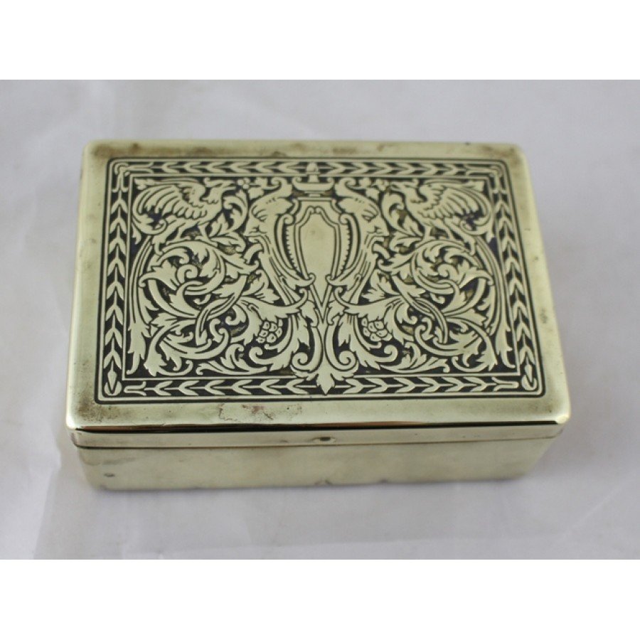 | Condition | Good condition commensurate with age. Slight looseness to lid. A fe minor dinks to metal |